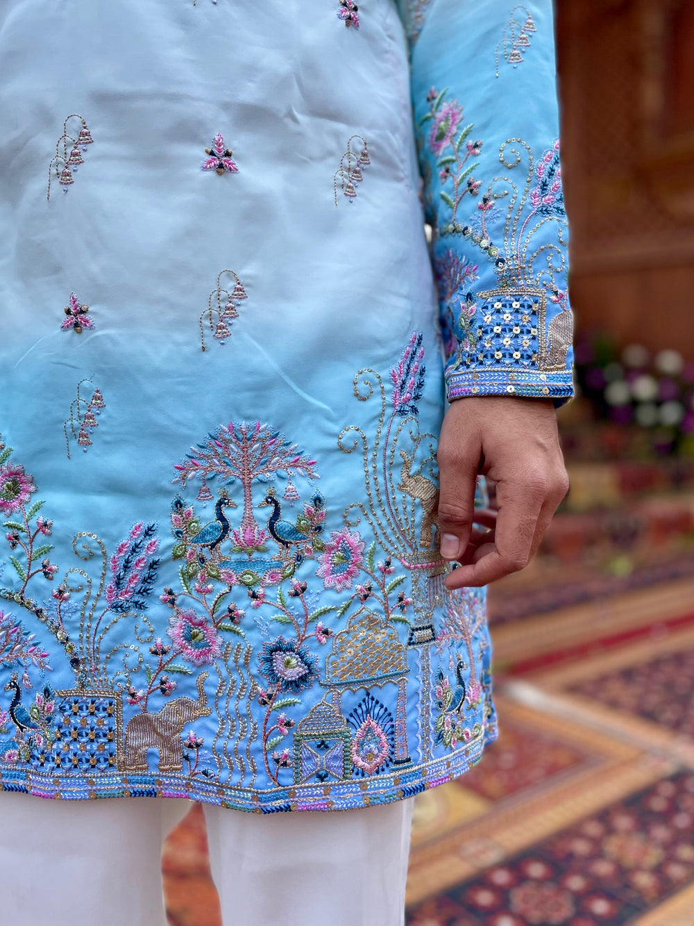 SKY BLUE SHAHI JACQUARD DESIGNER INDO-KURTA