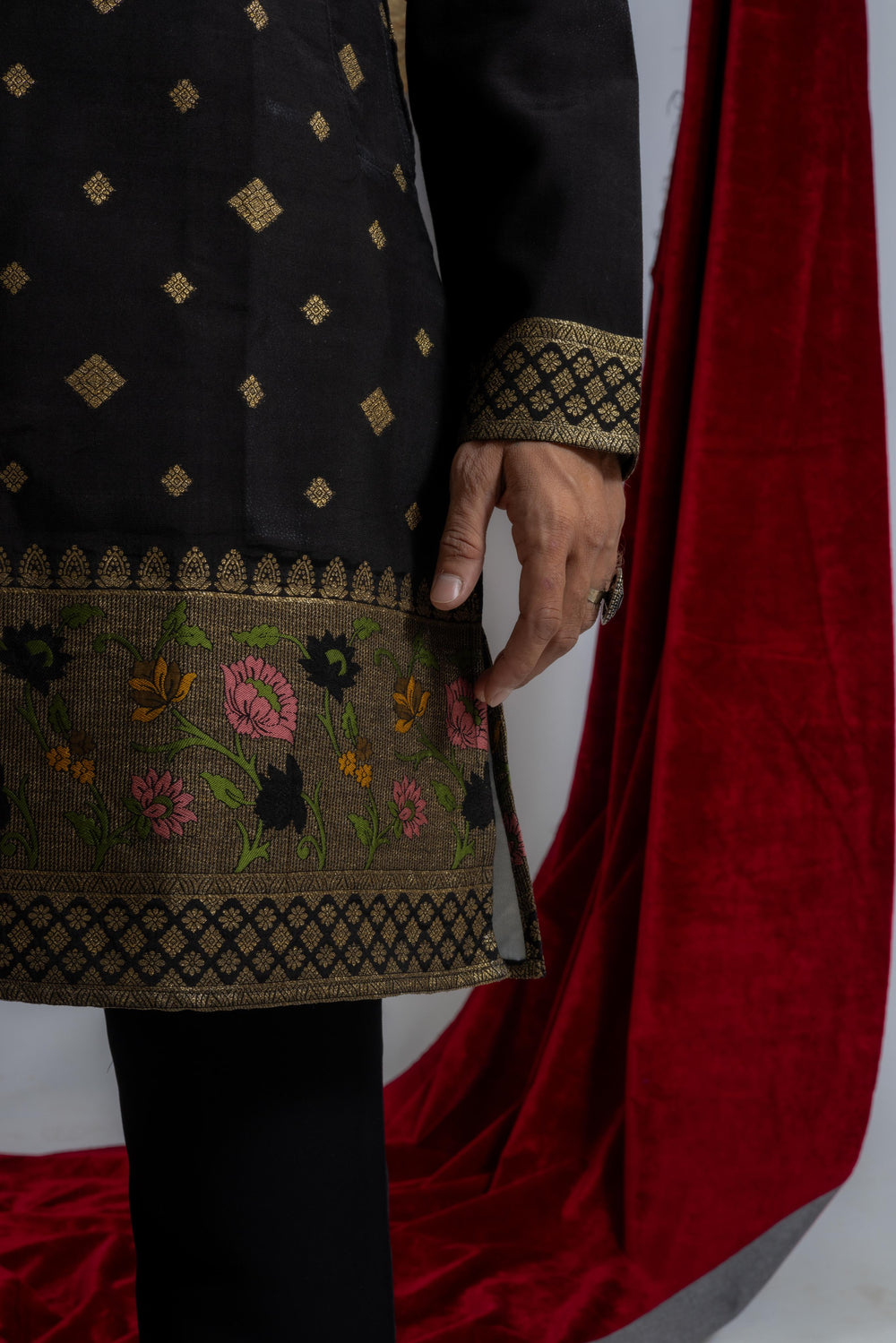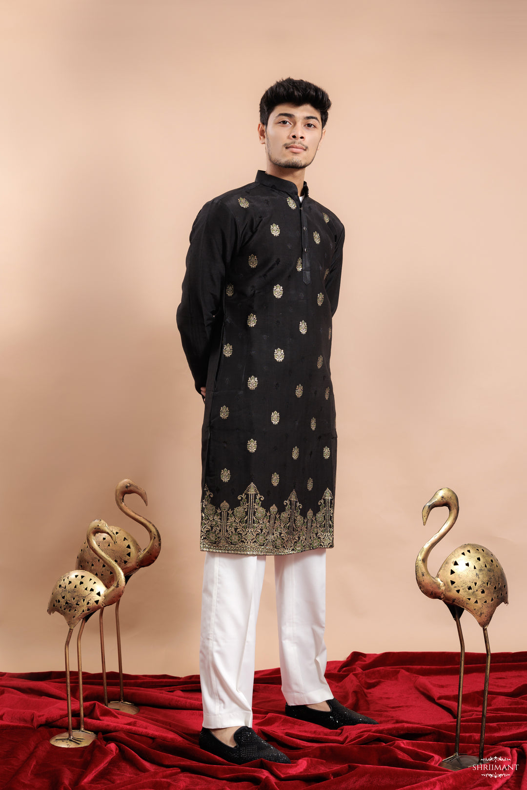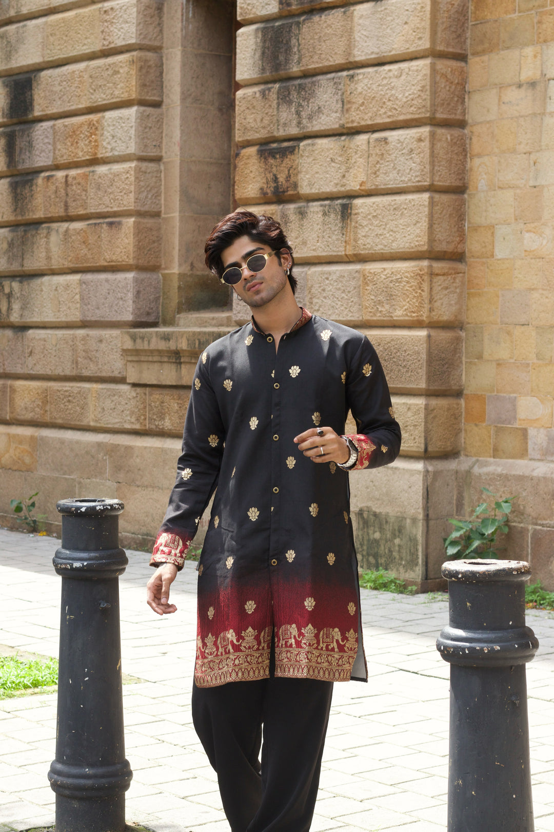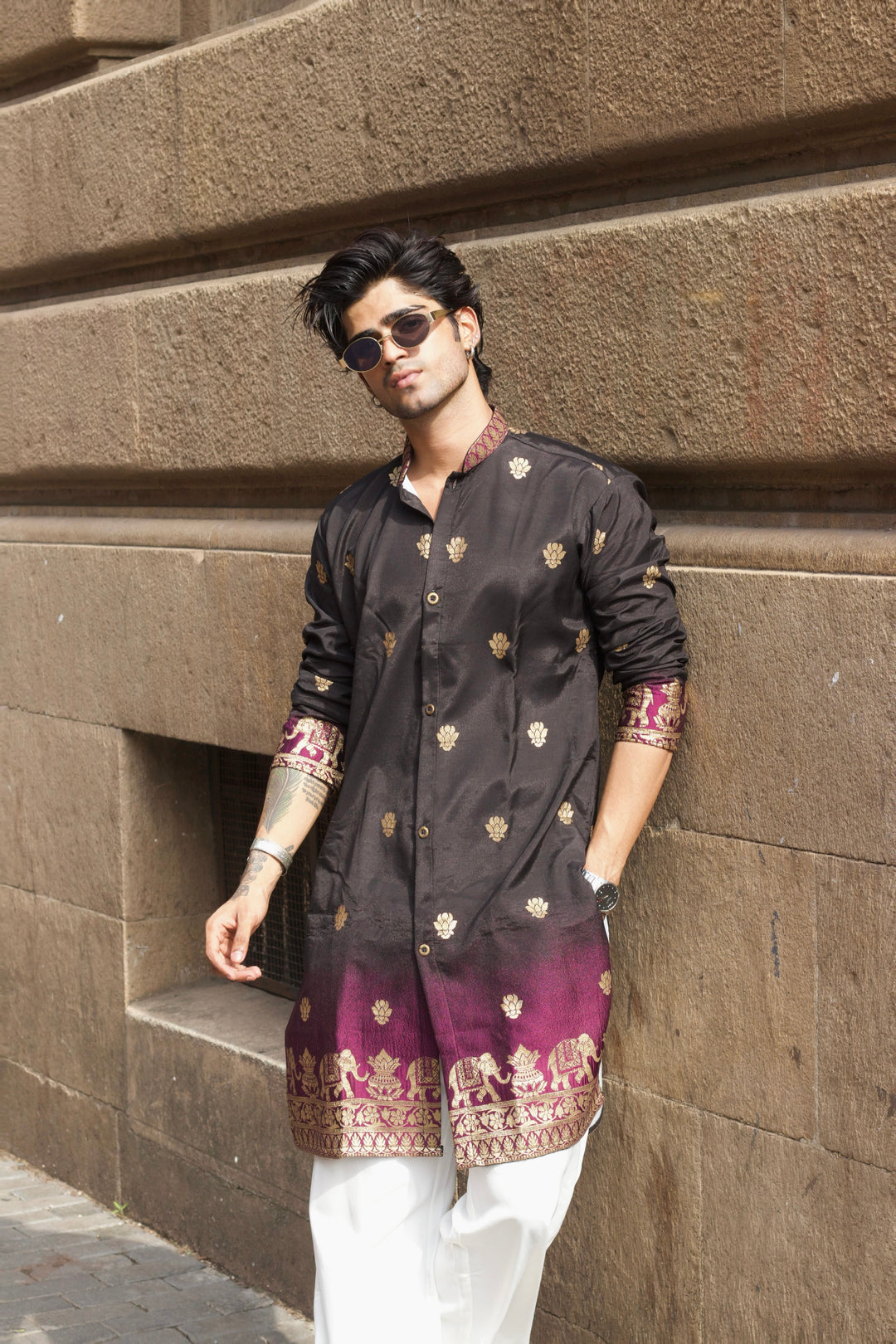 BLACK BANARASI BORDER JACQUARD DESIGNER INDO KURTA