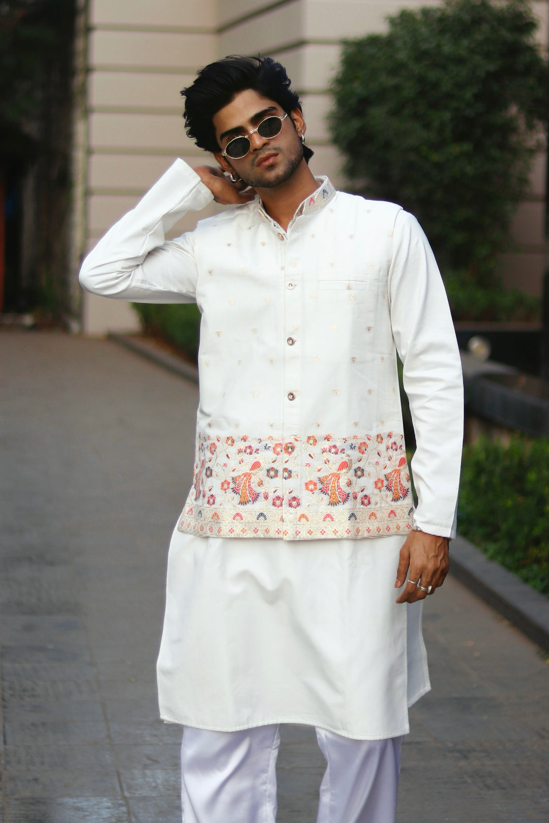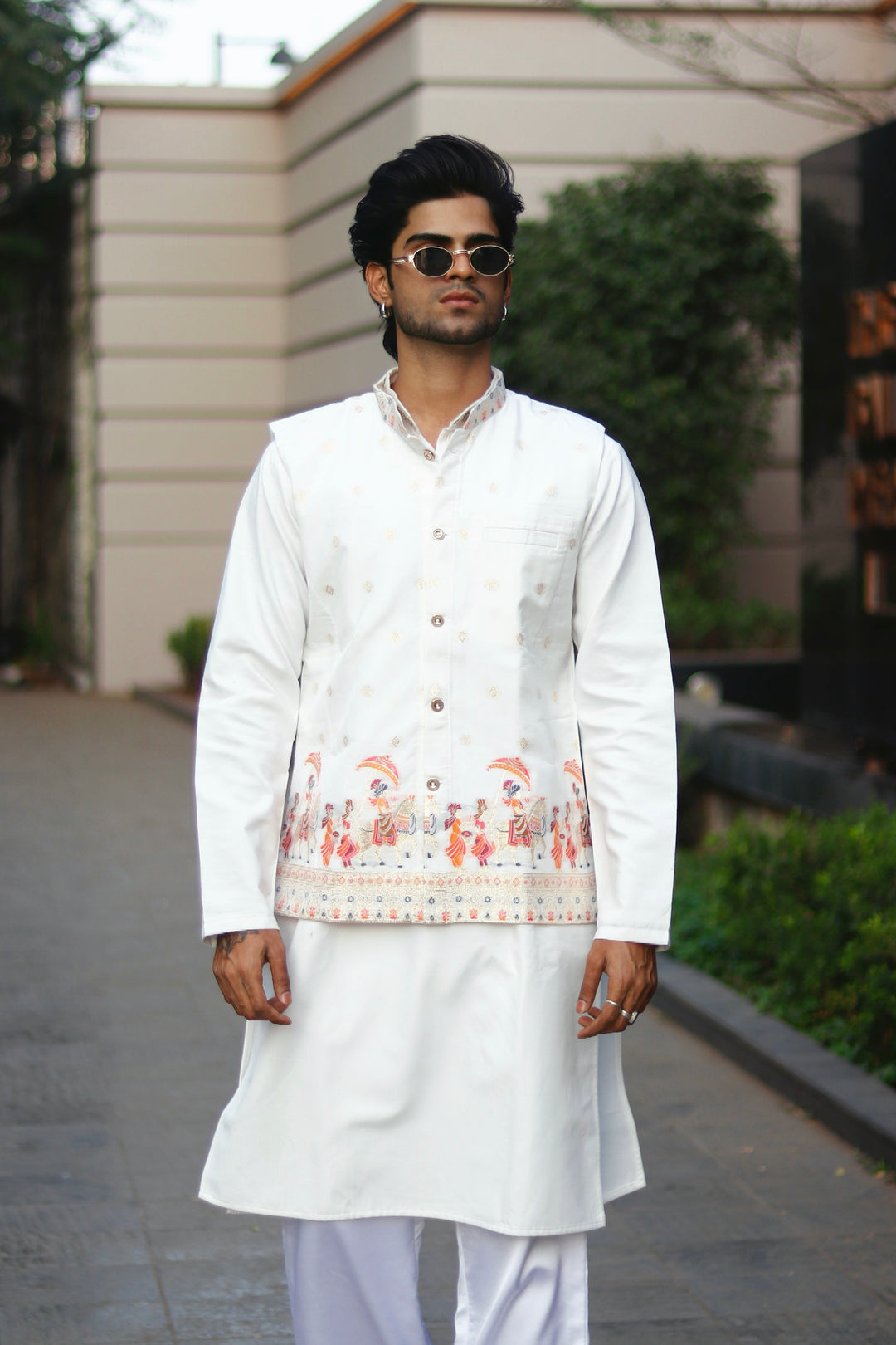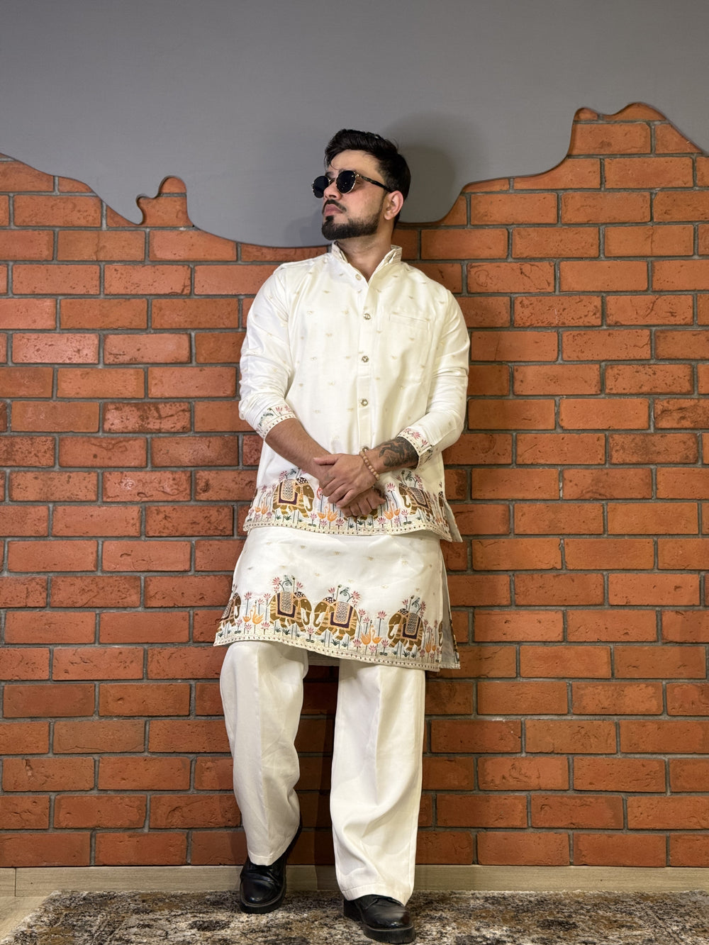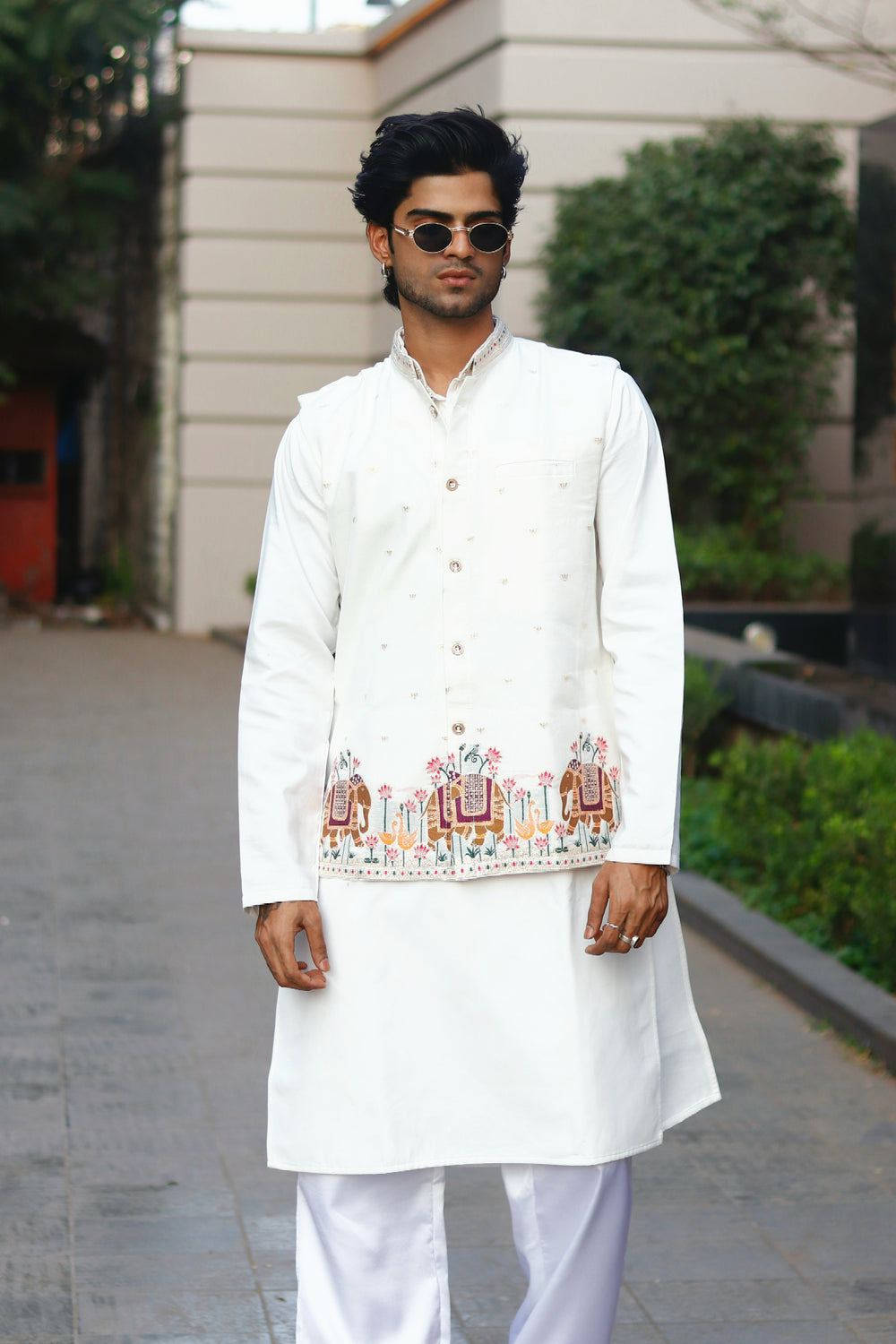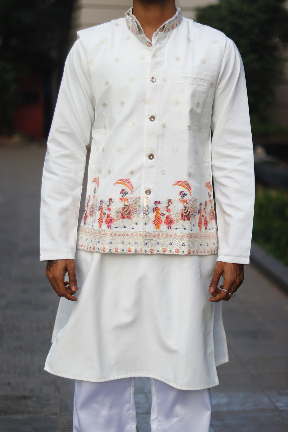 KOTI KURTA - WHITE ELEPHANT JACQUARD DESIGNER GARMENT
